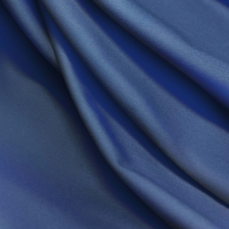 La tela base es Lycra Reciclada - Seal de 230 gr/m2, compuesta de 75% poliéster y un 25% de elastano, con una textura elástica y un ancho de 150 cm. El color liso impreso es un azul marino profundo, con una combinación de tinta cyan en un 100%, magenta en un 84%, yellow en un 37% y black en un 27%, reflejado en el CMYK: 100 84 37 27. Dicho color se combina perfectamente con colores claros como el blanco o el amarillo, y colores oscuros como el gris o el negro.