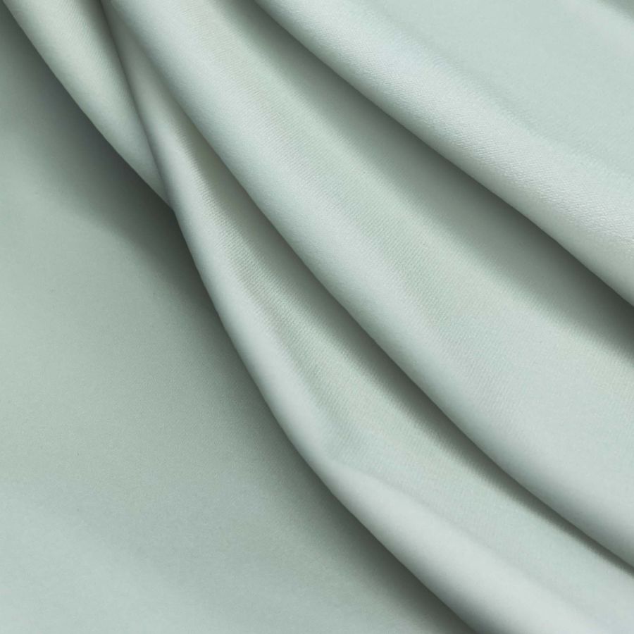 La tela base es la Lycra Reciclada - Seal de 230 gr/m2, compuesta en un 75% de Poliéster y un 25% de Elastano. El color de la tela lisa impresa es un Verde-Azul verde, con un CMYK de 35 10 26 0. Este color se caracteriza por ser vibrante y alegre, con una fuerte presencia de la tonalidad verde. Combina especialmente bien con tonos como el blanco, el negro y el amarillo, creando un equilibrio visual y una paleta de colores armoniosa.