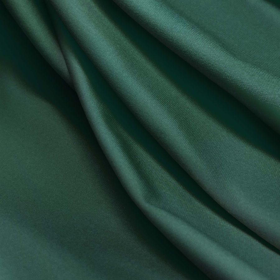 La tela base es Lycra Reciclada - Seal de 230 gr/m2 en color liso impreso en verde bosque oscuro, con un CMYK de 91 50 73 66. Este color se describe como un tono oscuro, profundo y terroso con un toque de frescura. Combina perfectamente con tonos neutros como el gris y el beige, así como con tonos más brillantes como el amarillo mostaza y el rosa viejo.