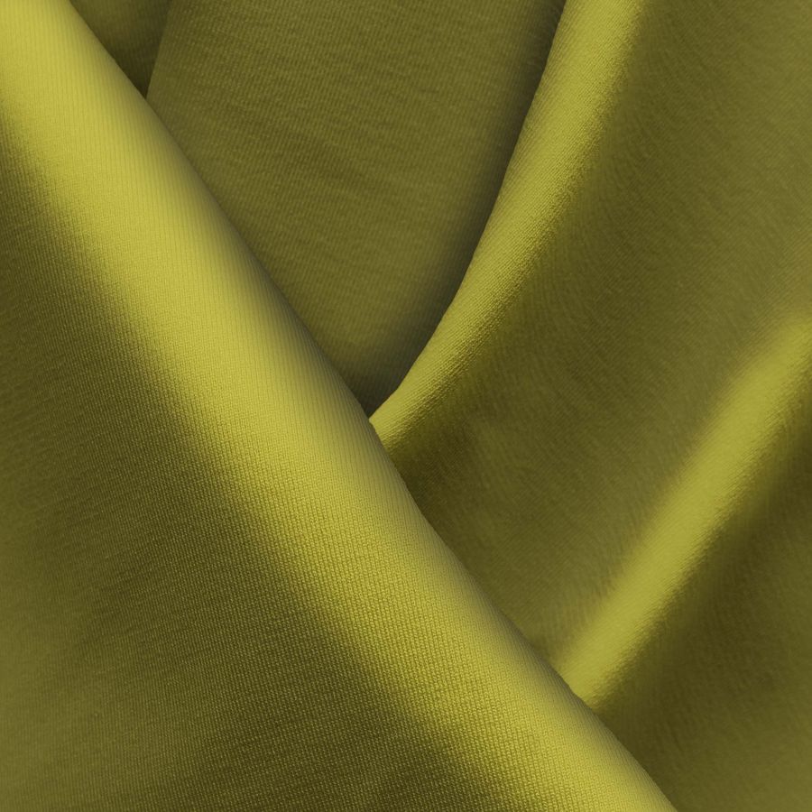 La tela base es una Lycra Reciclada - Seal de 230 gr/m2, compuesta por un 75% de poliéster y un 25% de elastano. El color liso impreso en la tela es Verde Mocasín oscuro, con un CMYK de 50 39 100 29. Este Verde Mocasín oscuro es un color terroso y cálido, que combina muy bien con tonos marrones, verdes más claros y naranjas. Es un color que transmite una sensación de confort y naturalidad.