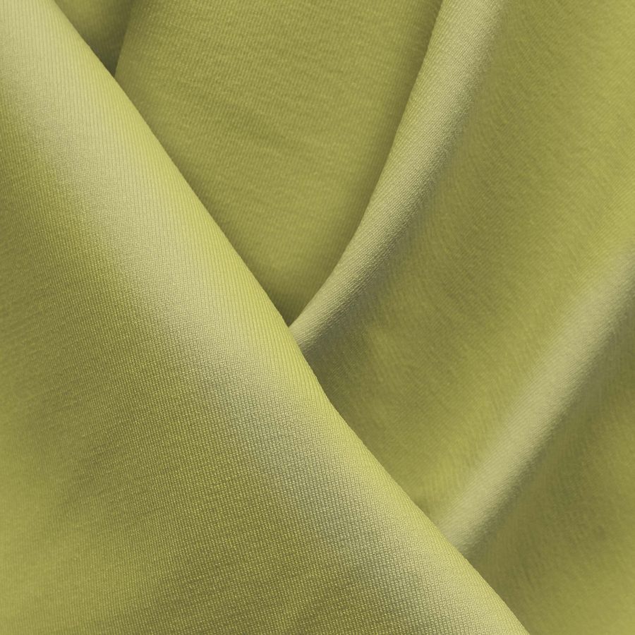 El tejido está impreso con el color liso a una sola cara por impresión digital textil. No se trata de un tejido tintado, sino impreso por una sola cara. La tela base de lycra reciclada aporta características como textura, tacto y elasticidad debido a la mezcla del 75% de poliéster y el 25% de elastano. Además, ofrece acabados como la resistencia al cloro y la protección UV muy alta 50+, gracias a su certificación GRS y su tecnología de sublimación.