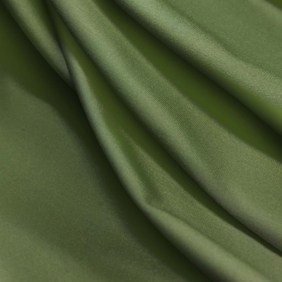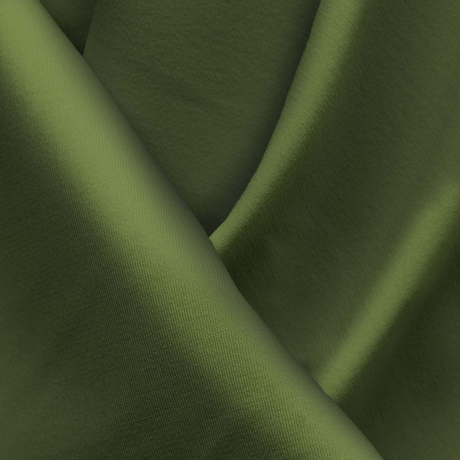 La tela base es Lycra Reciclada - Seal de 230 gr/m2, con composición de 75% poliéster y 25% elastano. El color liso impreso es Verde, con una combinación de tinta CMYK de 70% Cyan, 48% Magenta, 93% Yellow y 51% Black. El color secundario se describe como verde ejército, con tonalidades terrosas y naturales que evocan la naturaleza. Combina bien con tonos tierra, marrones y neutros en general.