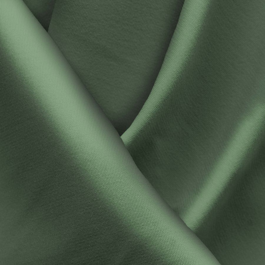 La tela base es Lycra Reciclada - Seal de 230 gr/m2, compuesta por 75% poliéster y 25% elastano. El color liso impreso es verde bosque oscuro, con una combinación de tinta de cyan 69, magenta 42, amarillo 70 y negro 37, representados por el código CMYK 69 42 70 37. La tela está impresa con el color liso a una sola cara por impresión digital textil.