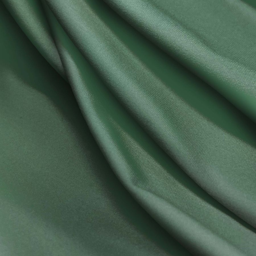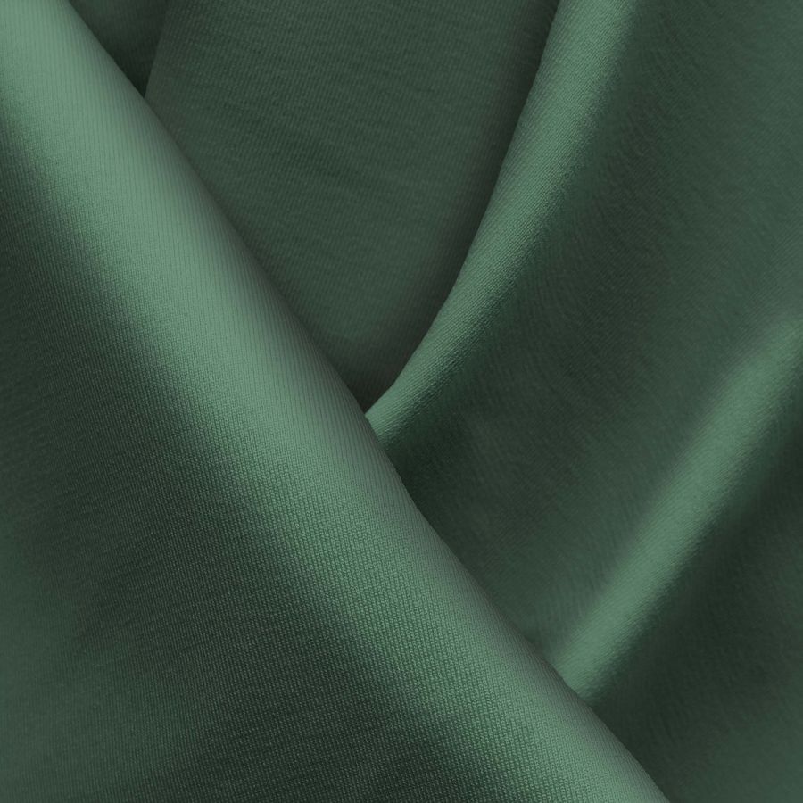 La tela base es Lycra Reciclada - Seal de 230 gr/m2 y su color liso es Verde Bosque Oscuro con un CMYK de 75 45 69 48. Este color evoca a la naturaleza, transmitiendo frescura y serenidad. Se complementa perfectamente con tonos neutros como el blanco, gris o negro, y destaca especialmente con colores brillantes como el amarillo mostaza o el naranja. Es importante destacar que la tela está impresa con el color liso a una sola cara por impresión digital textil.