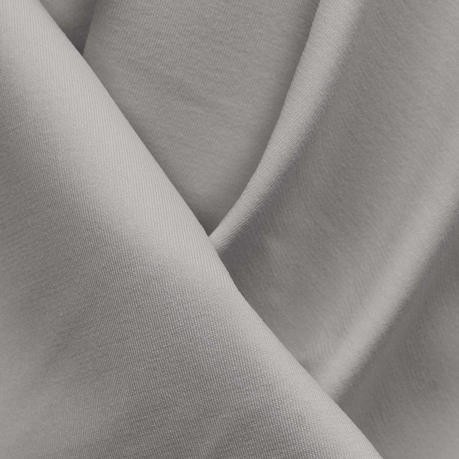 La tela base es la Lycra Reciclada - Seal de 230 gr/m2, compuesta por 75% poliéster y 25% elastano. El color liso impreso es gris ganso, con un CMYK de 15 13 14 0. Este color secundario destaca por ser un tono frío y elegante, que combina muy bien con otros colores como el rosa pálido, el lila o el azul marino.