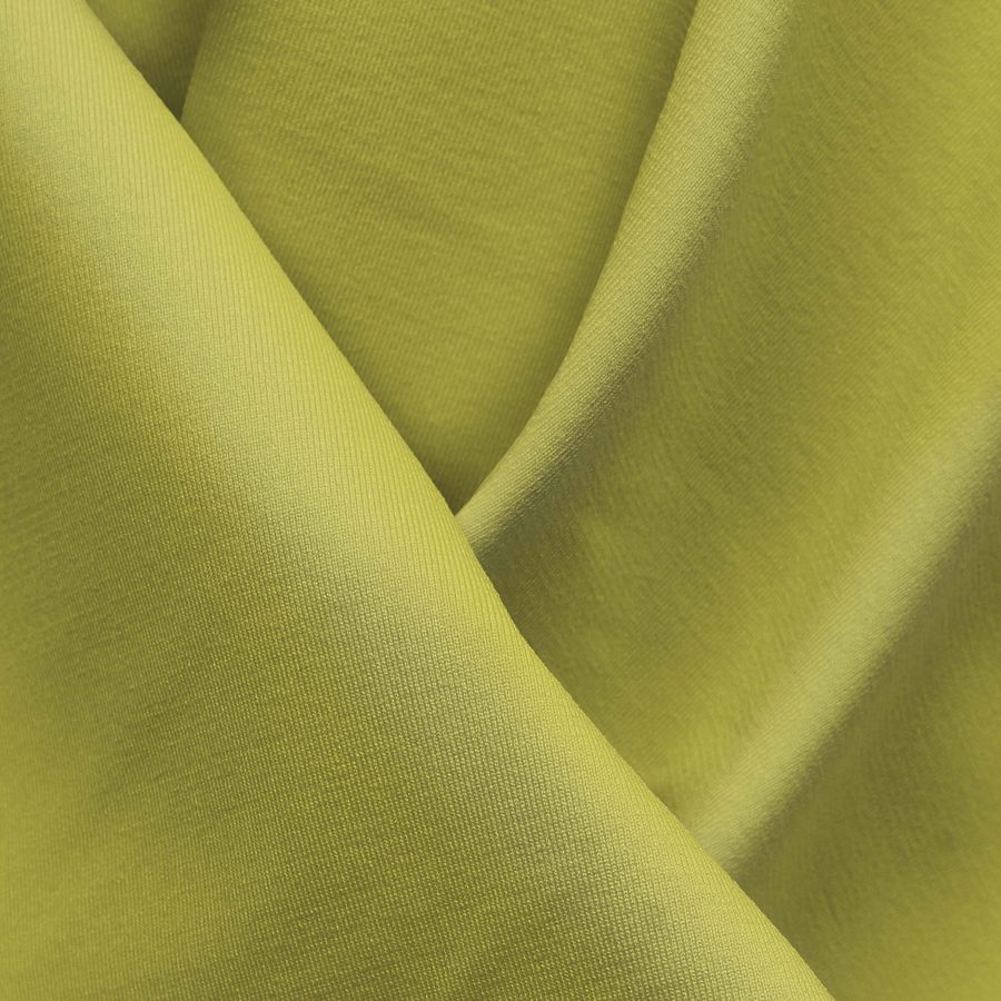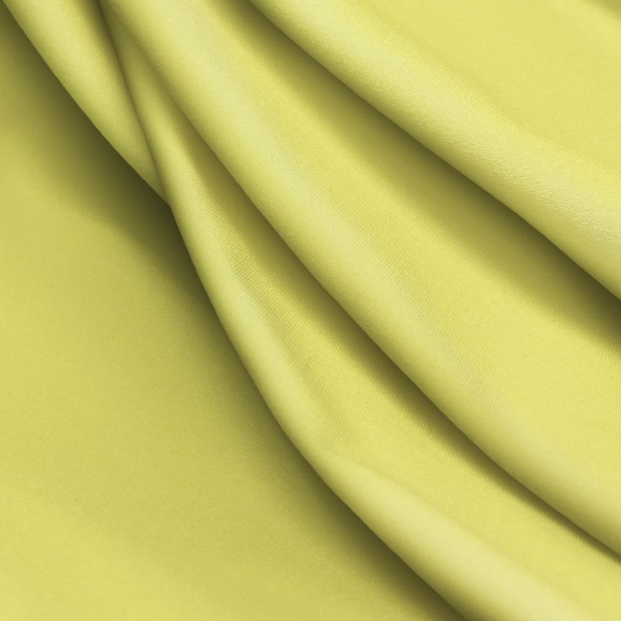 La tela base es Lycra Reciclada - Seal de 230 gr/m2, compuesta por 75% poliéster y 25% elastano. Su color liso impreso es Amarillo Plátano, con un contenido de 13 de tinta Cyan, 1 de tinta Magenta, 70 de tinta Yellow y 0 de tinta Black, lo que corresponde al perfil de color CMYK 13 1 70 0. Este color se identifica por su luminosidad y frescura, asociado a la alegría, la energía y el optimismo. Combina muy bien con otros colores suaves, como el blanco, el rosa pastel o el celeste.