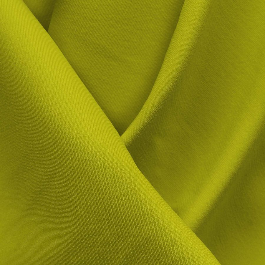 La tela base de la prenda es Lycra Reciclada - Seal, compuesta por poliéster y elastano, con un gramaje de 230 gr/m2 y un ancho de 150 cm. El color impreso en esta tela es un verde camaleón, con un CMYK de 23, 4, 94, 0. Este color es un tono verde oscuro con matices amarillentos, semejante al color de las hojas de un árbol en verano. Combina bien con tonos tierra como el marrón o el beige, y también con tonos azules más claros.