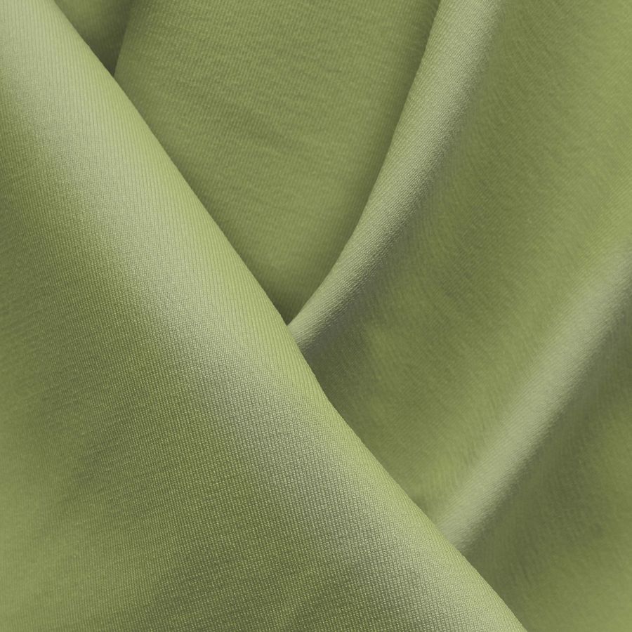 La tela base de este tejido es Lycra Reciclada, tiene un peso de 230 gr/m2 y una composición de 75% Poliéster y 25% Elastano. Esta tela es elástica y tiene una textura suave al tacto. El color liso impreso en esta tela es Verde DarkKhaki, que se representa con un CMYK de 28 4 56 0. Este color es un tono verde oscuro con matices beige.
