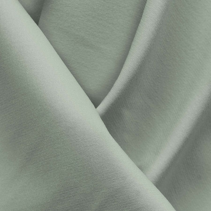 La tela base es la Lycra Reciclada - Seal de 230 gr/m2, compuesta por un 75% de poliéster y un 25% de elastano, lo que le otorga una textura elástica y un tacto suave. El color liso impreso es de un tono verde intenso, similar al de una rana, con los siguientes valores en CMYK: 20% de cyan, 2% de magenta, 22% de yellow y 0% de black.