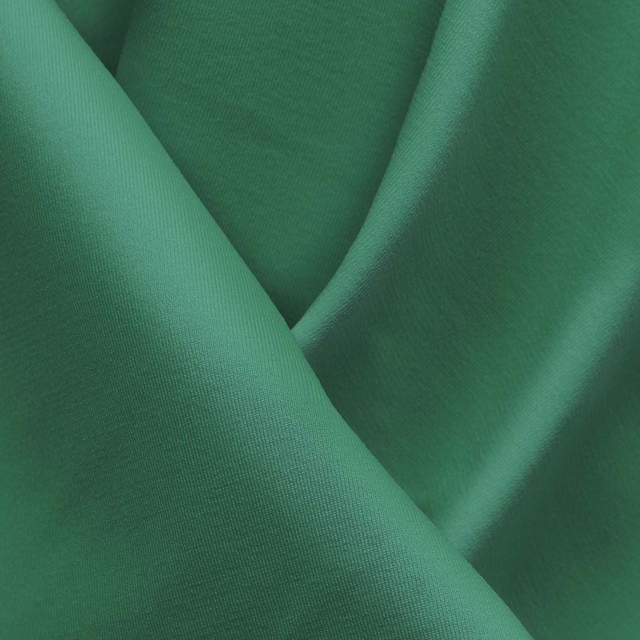 La tela base es una Lycra Reciclada de 230 gr/m2 con un ancho de 150 cm y composición de 75% Poliéster y un 25% de Elastano. El color liso impreso es un tono de verde tierra con una combinación CMYK de 68 13 60 1 y es impreso por una sola cara mediante la tecnología de sublimación. La tonalidad de verde tierra tiene una simbología muy rica ya que se relaciona con la naturaleza y la tierra, evocando una sensación de tranquilidad y equilibrio emocional. Combinado con otros colores, como el blanco o el negro, se consigue un look más urbano o sofisticado, mientras que con el naranja o amarillo, es posible obtener un estilo más veraniego y alegre.