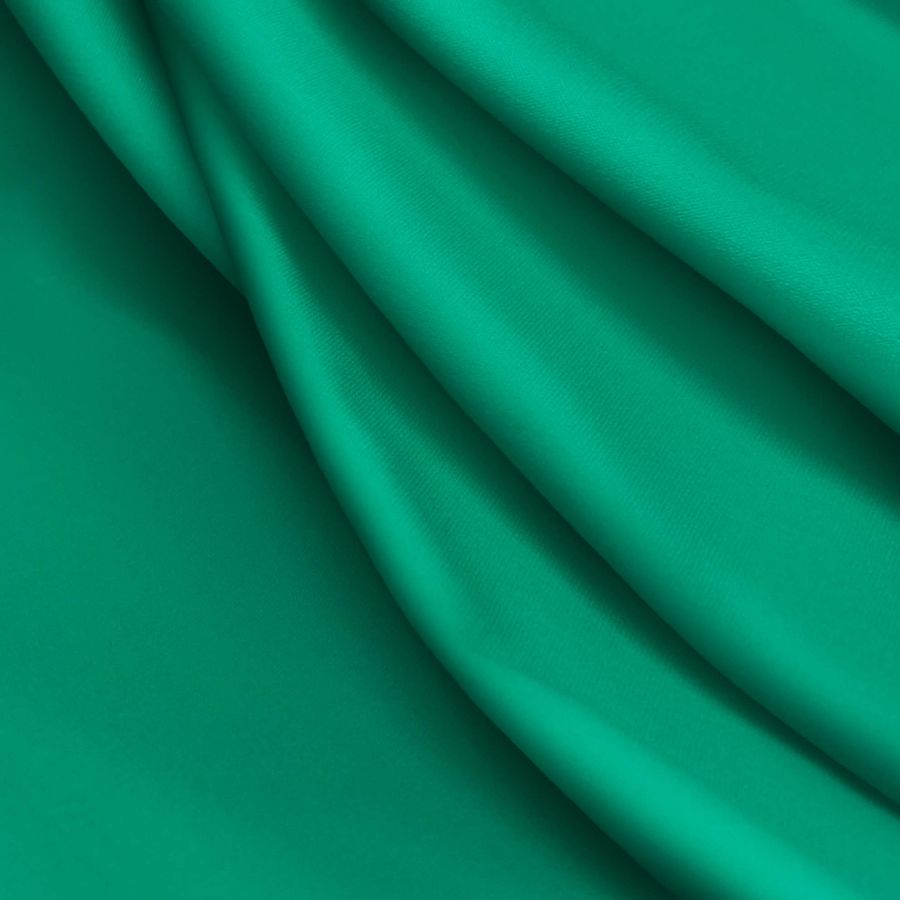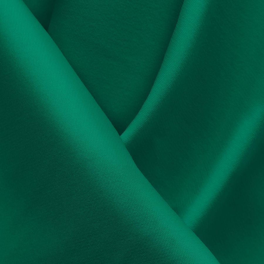 La tela base es Lycra reciclada Seal de 230 gr/m2, con una composición de 75% poliéster y 25% elastano, y un ancho de 150 cm. Su color liso impreso es Verde Menta Oscura, cuyo CMYK es 85 23 69 7, y está impreso a una sola cara por impresión digital textil. Este color es un verde suave y refrescante que combina muy bien con tonos cremosos, pálidos y azul marino.