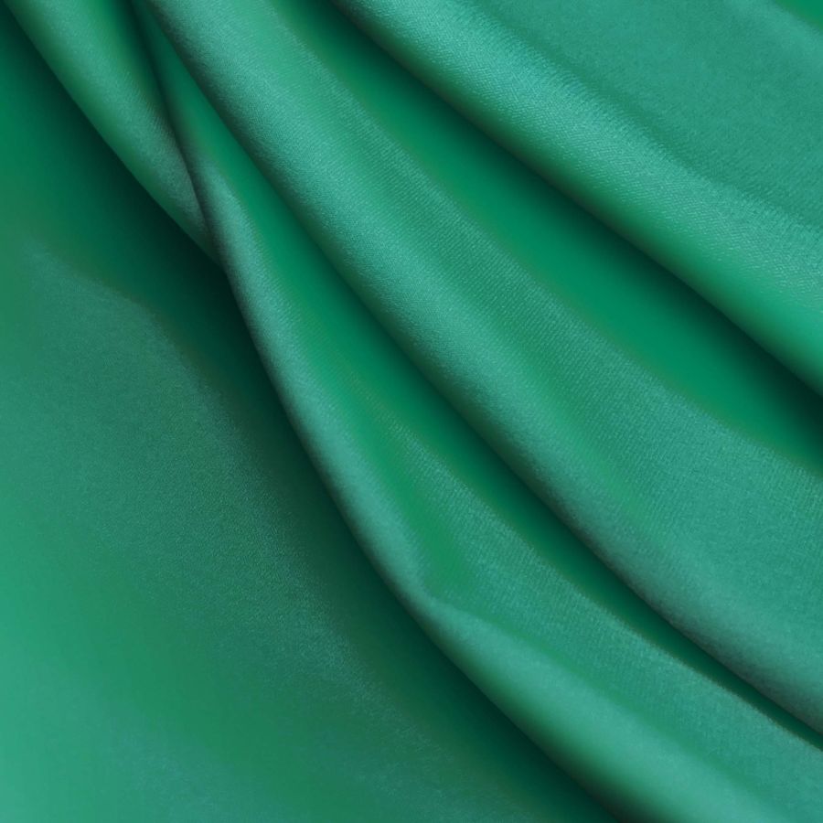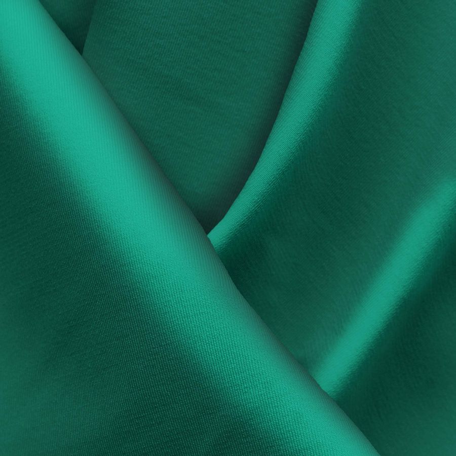 La tela base es Lycra Reciclada - Seal de 230 gr/m2, una tela elástica y resistente al cloro con un gramaje de 230 gr/m2 y un ancho de 150 cm. El color secundario es un verde mar profundo creado a partir de la mezcla de tinta cian (89), magenta (33), amarillo (69) y negro (26), lo que resulta en un CMYK de 89 33 69 26. Este color ofrece una sensación de profundidad y serenidad, combinando perfectamente con colores como el blanco, el dorado y el rosa palo.