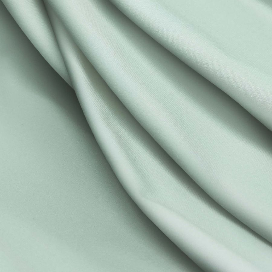 La Lycra Reciclada - Seal de 230 gr/m2 es una tela elástica con una composición de 75% poliéster y 25% elastano. Su gramaje es de 230 gr/m2, y su ancho de 150 cm. En cuanto a su color liso impreso, este es de un verde llamado DarkSeaGreen, cuyo CMYK es 33 5 26 0 y está impreso a una sola cara por impresión digital textil. Este color, simbólicamente asociado con la naturaleza y la tranquilidad, es una variante intermedia entre el verde oscuro y el verde claro, que presenta un ligero matiz grisáceo. Combina bien con otros colores verdes y azules, y también se puede utilizar como contrapartida a colores cálidos como el naranja o el rojo.