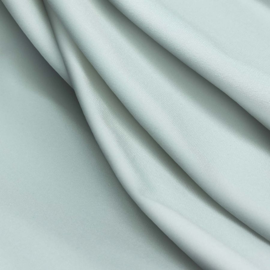 La tela base es de Lycra Reciclada - Seal de 230 gr/m2, compuesta por 75% de poliéster y 25% de elastano. El color liso impreso es verde crema de menta, representado por un CMYK de 29 5 17 0. Este color es una mezcla de verde con un ligero tono grisáceo, suave y fresco como la primavera. Combina magníficamente con tonos neutros, como el blanco y el gris, o tonos intensos como el rosa y el azul.