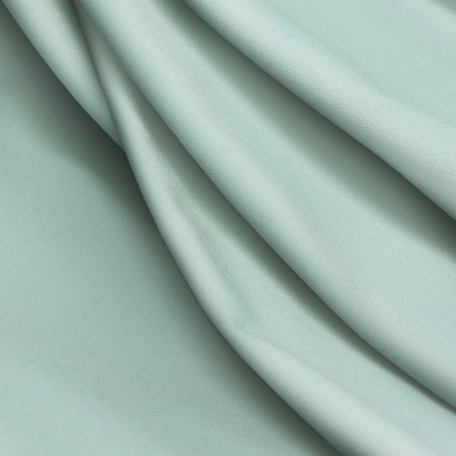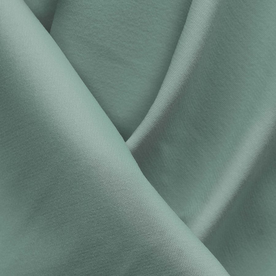 La tela base es Lycra Reciclada - Seal de 230 gr/m2 y el color liso impreso es un verde azulado con un contenido de CMYK de 40 7 29 0. Este color es evocador de la naturaleza y transmite calma y serenidad en la prenda. El color secundario se combina especialmente bien con tonos tierra, neutros y con tonalidades más claras y delicadas como el rosa palo y el beige.