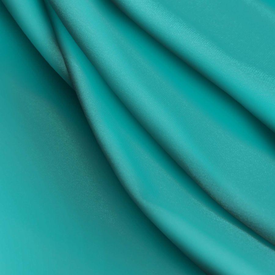 La tela base es Lycra Reciclada - Seal de 230 gr/m2, un tejido elástico con composición de 75% poliéster y 25% elastano. El color liso impreso es en tonalidad verde azulado medio, con un CMYK de 85 30 50 17. Este color se describe como fresco y moderno, evocando al mar y a la naturaleza. Combina bien con tonalidades claras, como el blanco y el rosa pastel, así como con tonalidades más oscuras y neutras, como el gris y el negro.