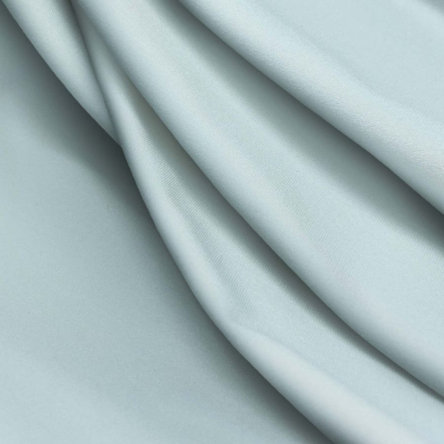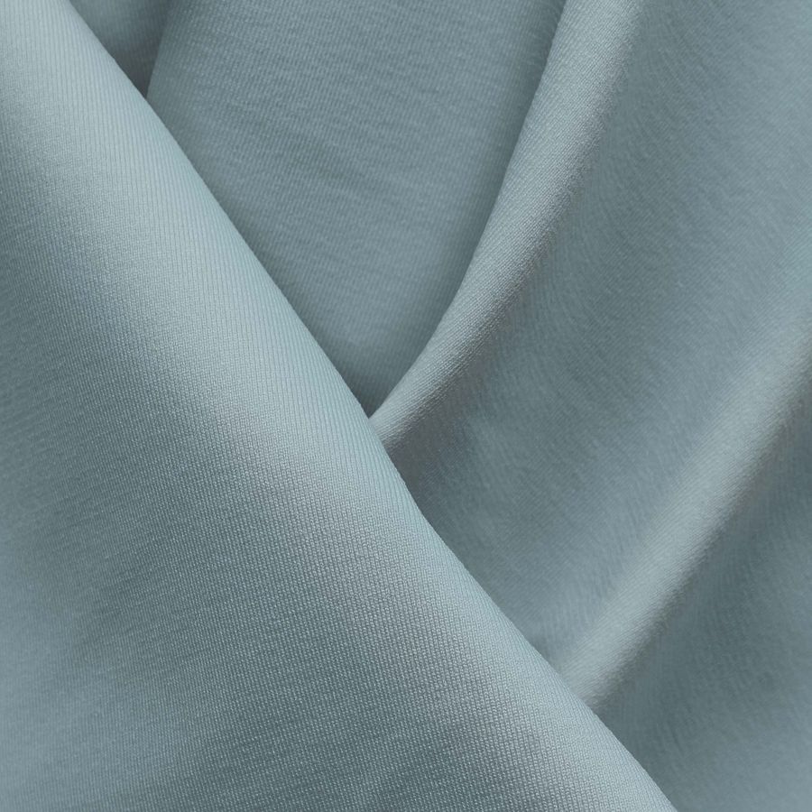 La tela base es la Lycra Reciclada - Seal de 230 gr/m2, compuesta por 75% de poliéster y 25% de elastano, con un gramaje de 230 gr/m2 y un ancho de 150 cm. El color liso impreso es Azul PowderBlue, cuyo CMYK es 32 5 13 0. Este color transmite frescura y tranquilidad, aunque también puede estar asociado a la tristeza. El tono PowderBlue se compone de un azul muy claro y un tono grisáceo, que lo hace un color suave pero no pastel. Es un color secundario que combina principalmente con tonos grises, azules, blancos y cremas.