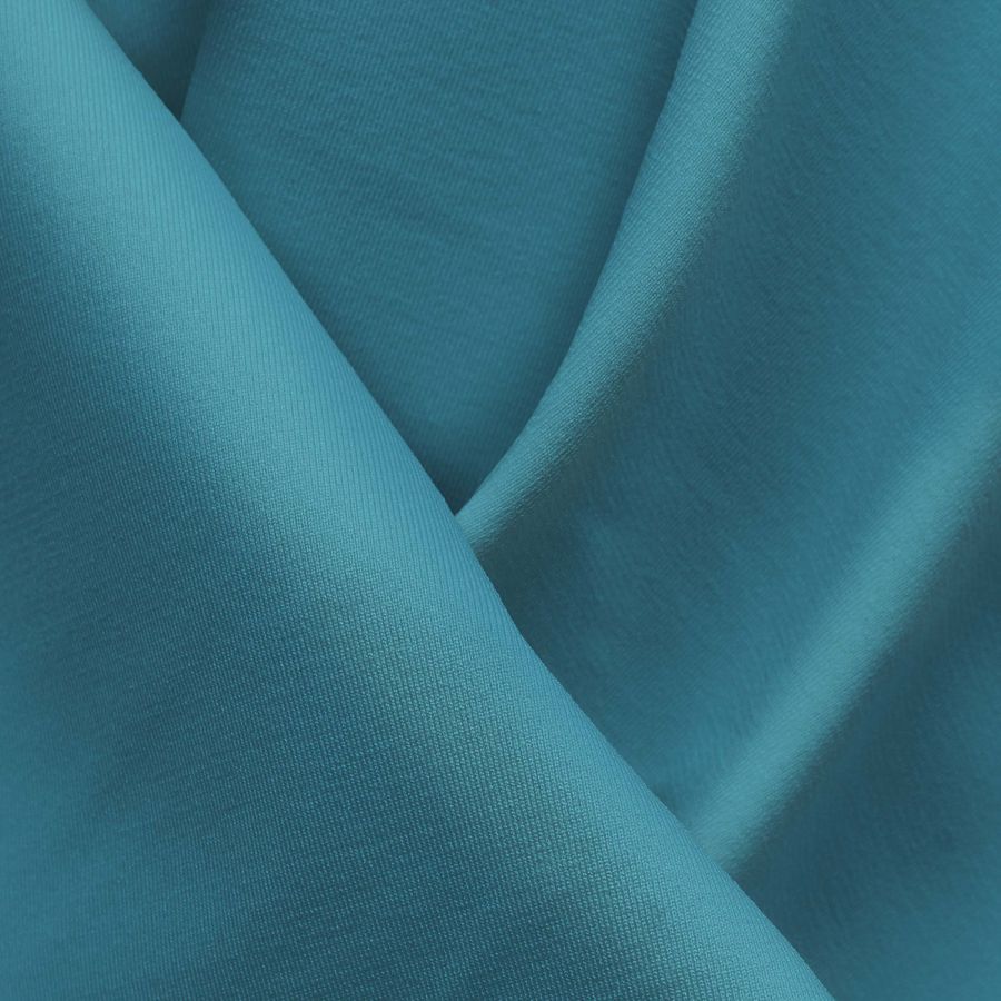 La tela base de este tejido es la Lycra Reciclada - Seal de 230 gr/m2, con composición de 75% POLIÉSTER y 25% ELASTANO. Su color liso impreso es un tono azul llamado Hosta azul, con un CMYK de 66 15 20 1, y combina especialmente bien con colores como el blanco y el negro. Cabe destacar que el tejido está impreso con el color liso a una sola cara por impresión digital textil.