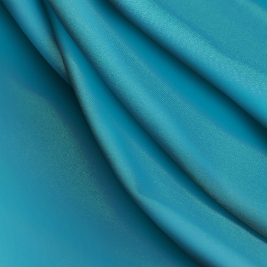 La tela base es la Lycra Reciclada de 230 gr/m2 en color liso Azul verdoso. El contenido del CMYK del color es 87 38 40 23, lo que proporciona un tono azul verdoso profundo y atractivo. El color secundario combina perfectamente con colores neutros como el blanco, beige y gris, así como con tonos más cálidos como el naranja y el rosa. La tela base está impresa con el color liso a una sola cara por impresión digital textil, lo que proporciona un acabado uniforme y un color vibrante. La textura es elástica y suave al tacto, lo que la hace adecuada para prendas ajustadas y cómodas. La tela también cuenta con una resistencia al cloro y un factor de protección solar UPF de 50+.