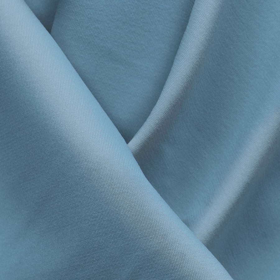La tela base es Lycra Reciclada de 230 gr/m2 en tonalidad Azul vaquero con una mezcla de tintas CMYK de 45C 9M 5Y 0K. Este color secundario simboliza la estabilidad y elegancia, al mismo tiempo que aporta un toque de frescura y energía. Combina perfectamente con tonos neutros como el blanco, el gris y el negro, aportando profundidad y contraste a las prendas.