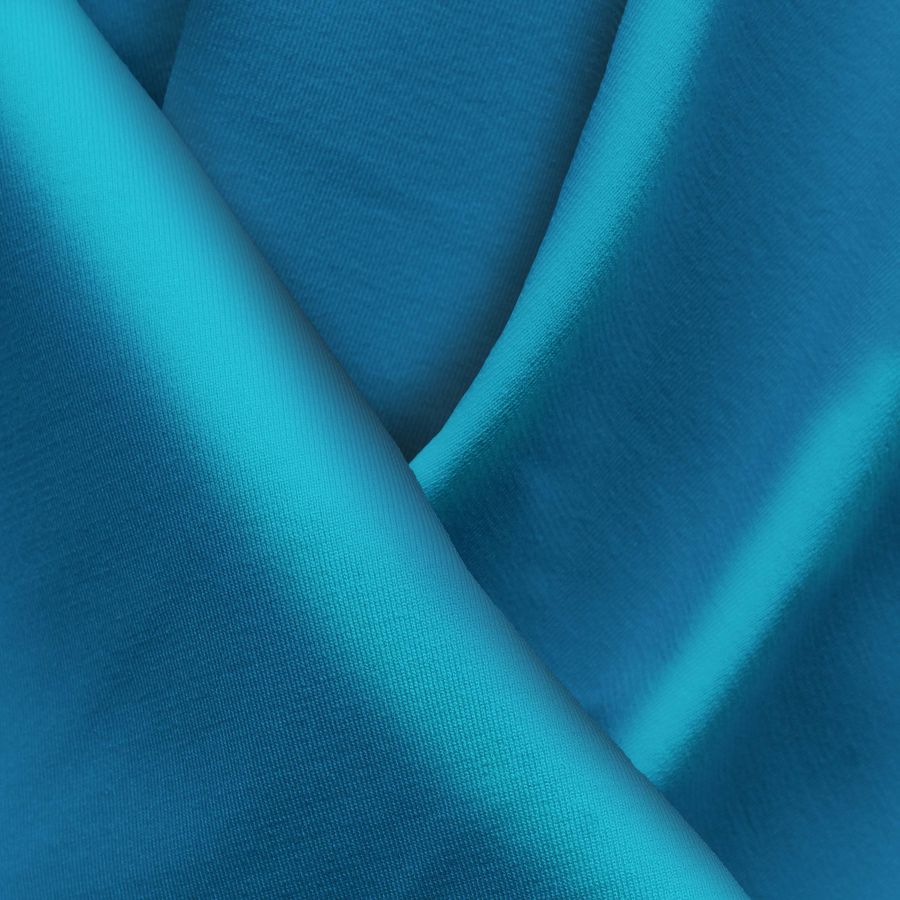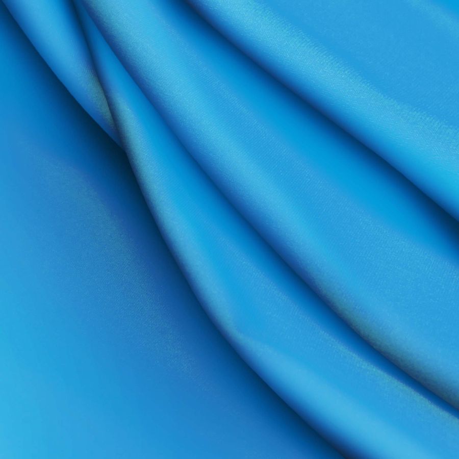 La tela base es Lycra reciclada - Seal de 230 gr/m2 en tono azul hielo glacial, con CMYK 87 45 18 4. El color secundario es una tonalidad suave y fría que inspira tranquilidad, frescura y pureza. Combina bien con blanco, tonos pastel, grises suaves y otros azules. La tela está impresa a una sola cara por impresión digital textil, proporcionando un estampado claro y vibrante en la superficie.