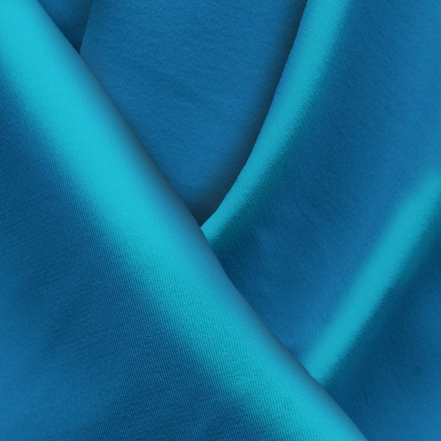 La tela base es una Lycra Reciclada - Seal de 230 gr/m2, compuesta por un 75% de poliéster y un 25% de elastano, con una textura suave y elástica. El color liso impreso sobre este tejido es un azul hiedra con un CMYK 87 46 10 1, lo que significa que está compuesto por una alta cantidad de cian, seguido de una cantidad moderada de magenta y una pequeña cantidad de amarillo y negro. Este color secundario transmite una sensación de calma y serenidad, y combina bien con tonos neutros como el blanco, el gris y el negro, así como con tonos más vibrantes como el rosa y el amarillo.