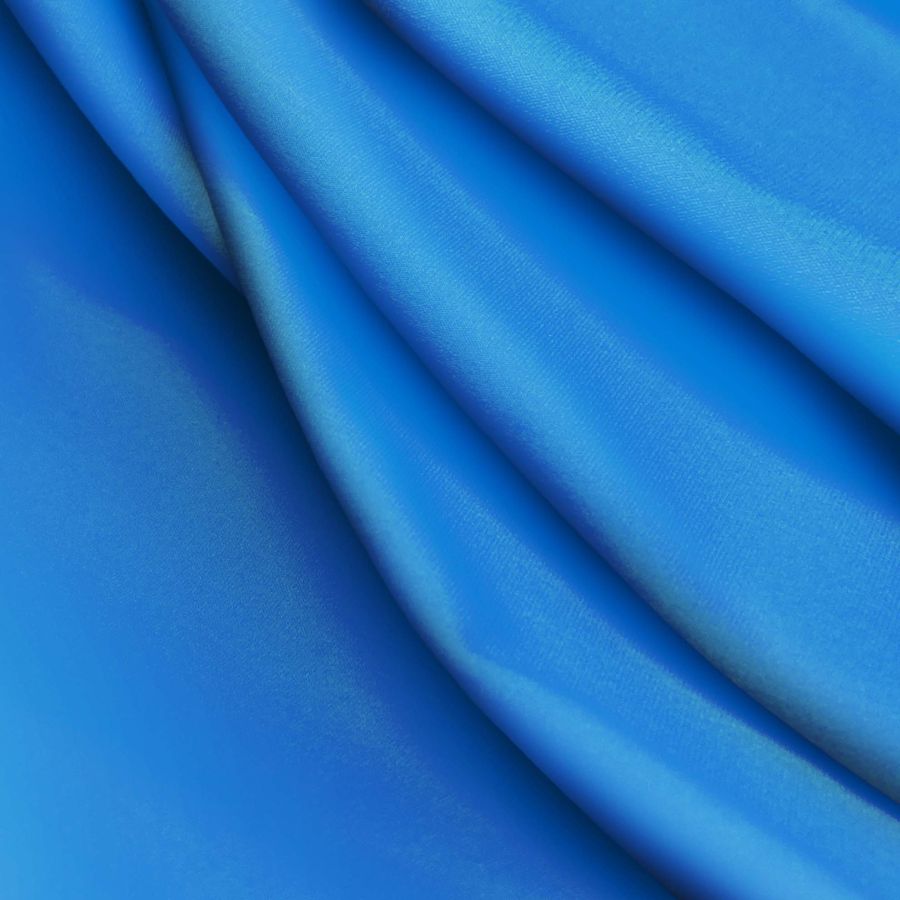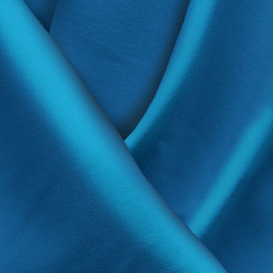 La tela base es la Lycra Reciclada Seal de 230 gr/m2, compuesta por un 75% de poliéster y un 25% de elastano, con un ancho de 150 cm. El color liso impreso es de tonalidad azul con un CMYK de 92 57 13 2, evocando a los ojos azules. Este color secundario transmite una sensación de calma y tranquilidad. Es una tonalidad refrescante y relajante que combina perfectamente con tonos grises, blancos y negros.