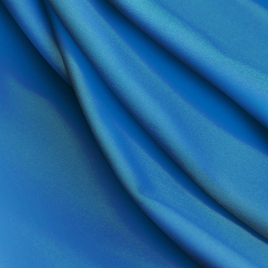 La tela base es Lycra Reciclada - Seal de 230 gr/m2 en color liso impreso en Azul Arrendajo. Su composición es 75% poliéster y 25% elastano, con un gramaje de 230 gr/m2 y un ancho de 150 cm. El color liso impreso tiene un contenido de CMYK de 95 60 28 13.