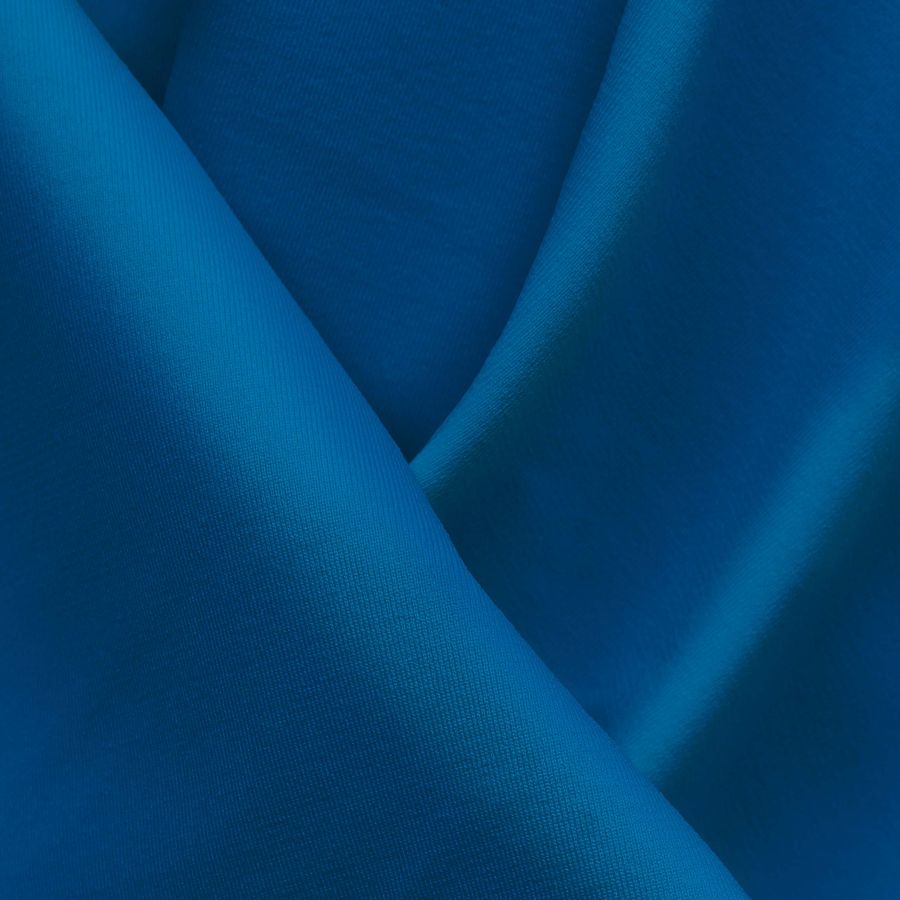 La tela base de este tejido es la Lycra Reciclada - Seal de 230 gr/m2, con una composición de 75% poliéster y 25% elastano, lo que le proporciona una textura suave y elástica. El color liso impreso es de tonalidad Azul Ojos Azules, con una combinación en su tinta Cyan de 89, Magenta de 53, Yellow de 3 y Black de 0, lo que da un tono vibrante y brillante. Este color secundario representa la serenidad y tranquilidad del mar, ideal para prendas con temática de playa. El color combina especialmente bien con colores neutros como el blanco o el negro, o tonos claros y pastel como el rosa o el amarillo.