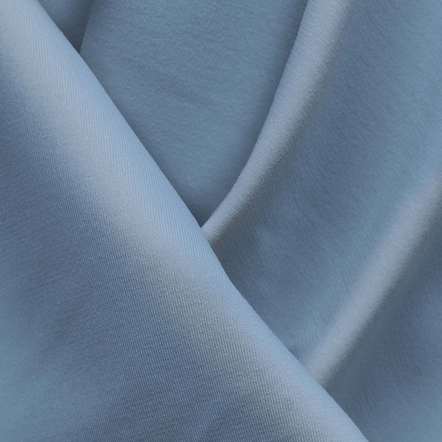 La tela base es Lycra Reciclada - Seal de 230 gr/m2, una tela de tipo lycra con una composición de 75% poliéster y 25% elastano. El color impreso es Azul Iceberg, representado por un CMYK de 40 15 2 0. Es un color secundario con una tonalidad fría y suave, que combina muy bien con otros tonos pastel o claros como el rosa, el gris o el blanco.