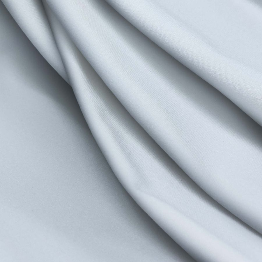 La tela base es la Lycra Reciclada - Seal de 230 gr/m2, compuesta por 75% poliéster y 25% elastano. El color liso impreso es un Azul pastel con un contenido de CMYK de 24-9-2-0, resultado de la tinta Cyan, Magenta, Yellow y Black utilizada en su impresión digital textil a una sola cara. Este tono de Azul se caracteriza por ser suave y relajante, evocando el agua y el cielo. Además, combina especialmente bien con tonos blancos, grises, rosas, amarillos y naranjas.