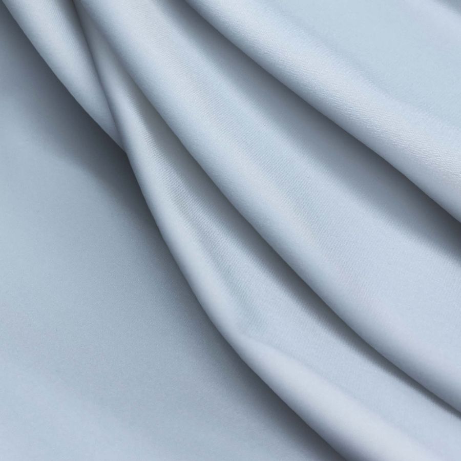 La tela base es la Lycra Reciclada Seal de 230 gr/m2, compuesta por un 75% de poliéster y un 25% de elastano, con un ancho de 150 cm. El color liso impreso en la tela es un azul con un CMYK de 34 16 3 0, también conocido como Angel Azul. Este color es una versión más suave del azul real y encaja perfectamente en ambientes de calma y relajación. Combina muy bien con el blanco para crear un look limpio y fresco, o con tonos más oscuros de azul para dar profundidad y dimensión.