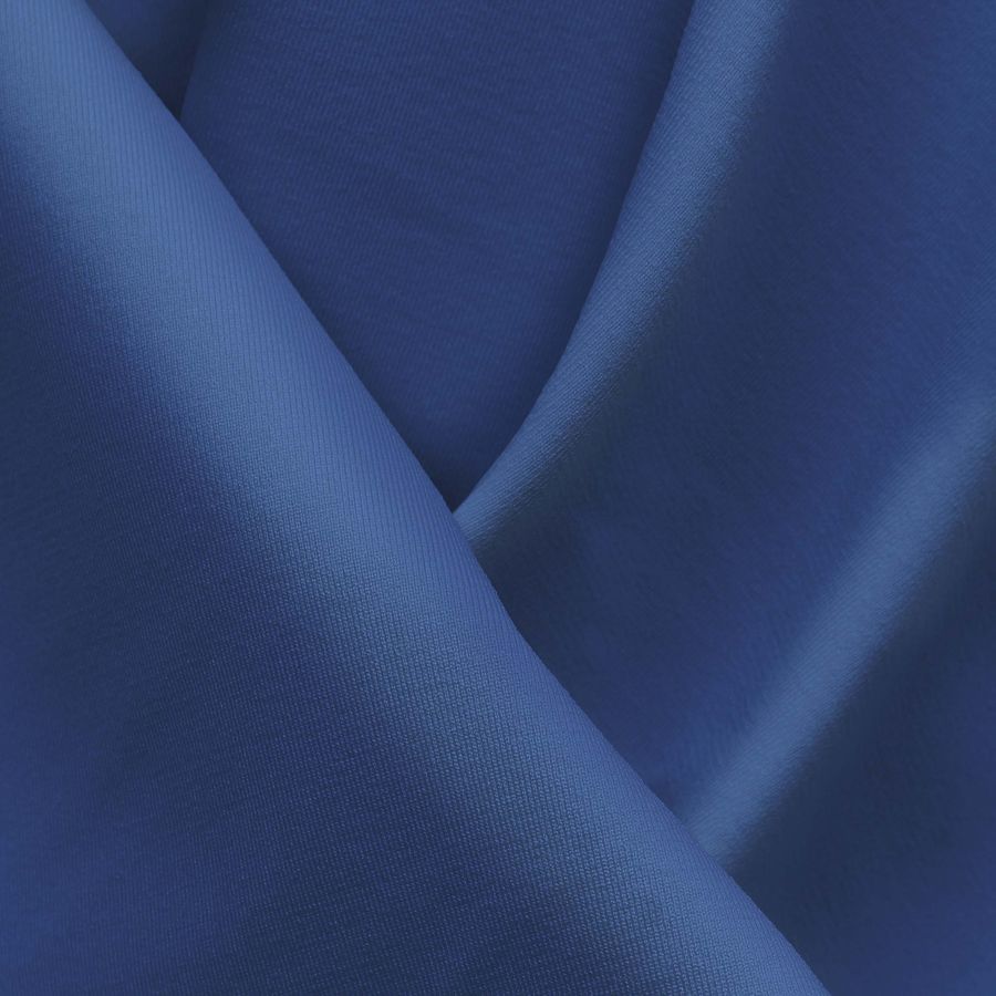 La tela base de este tejido es Lycra Reciclada - Seal de 230 gr/m2 y su color liso impreso es una mezcla de azul y azul celeste (CMYK: 77 58 7 0), con una presencia predominante de tonos azules. Este color transmite una sensación de libertad, calma y frescura, y combina especialmente bien con tonos neutros como el blanco y el gris.