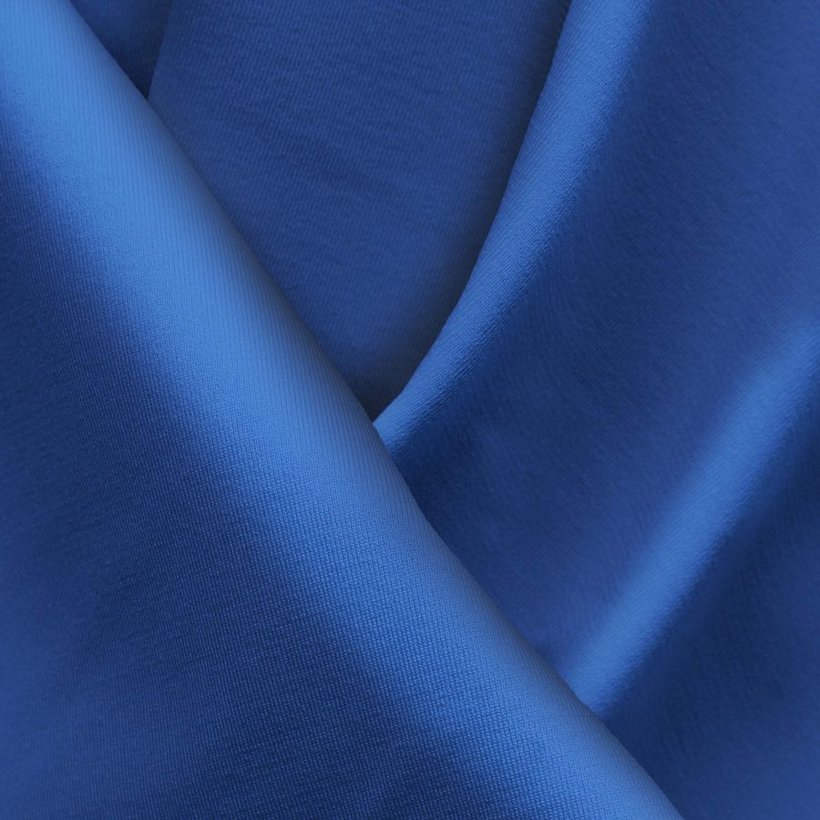 La tela base es la Lycra Reciclada - Seal de 230 gr/m2, con una composición de 75% POLIÉSTER y 25% ELASTANO. El color liso impreso es Azul arándano, con un CMYK de 97 77 6 0. Este color secundario es un tono de azul profundo, vibrante y enérgico con un toque de morado. Además, combina bien con otros tonos de azul y colores complementarios como el naranja o el amarillo.