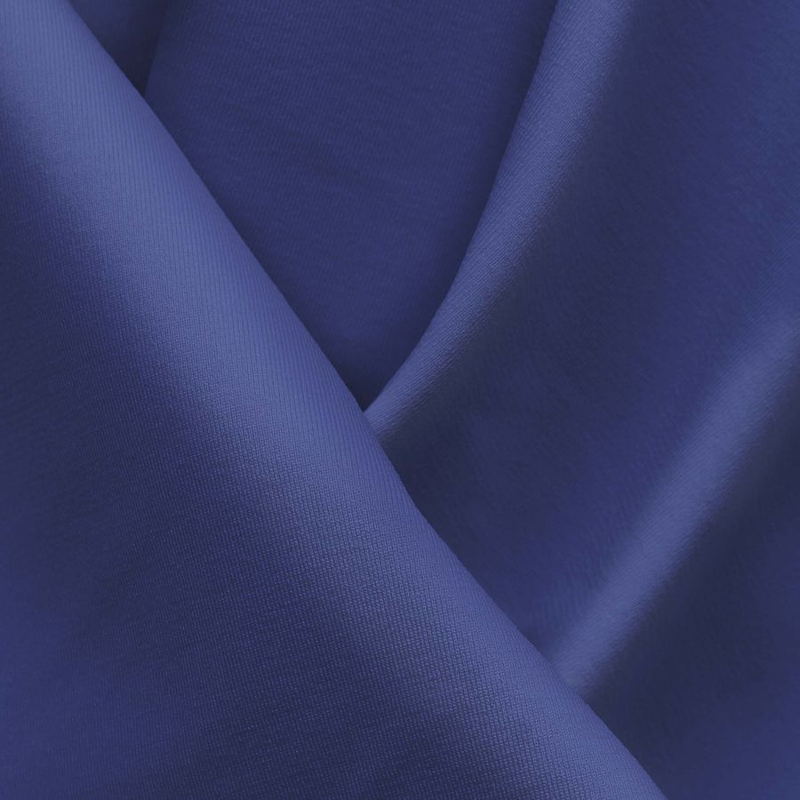 La tela base es la Lycra Reciclada - Seal de 230 gr/m2, con un tipo de tela de Lycra y una composición de 75% poliéster y 25% elastano. Su color liso impreso es azul oscuro (DarkSlateBlue) con un CMYK de 76 65 7 0. Este color aporta una sensación de profundidad y elegancia, combinando perfectamente con tonos claros como el blanco y tonos oscuros como el negro.