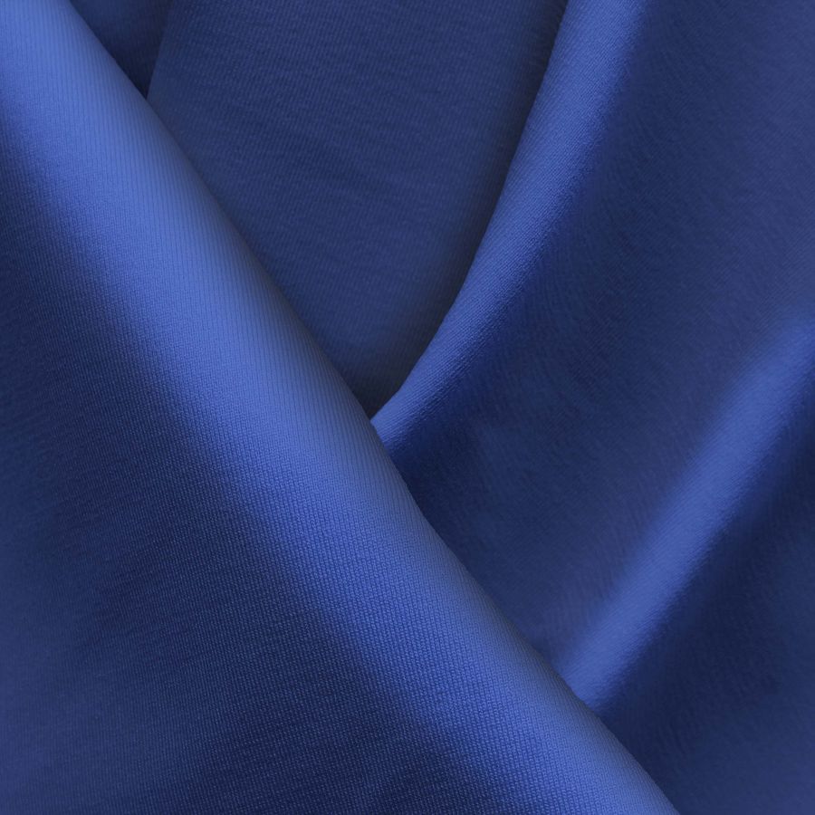 La tela base es Lycra Reciclada - Seal de 230 gr/m2, compuesta por 75% POLIÉSTER y 25% ELASTANO, con un gramaje de 230 gr/m2 y una anchura de 150 cm. El color liso impreso es Azul lapislázuli, con un CMYK de 100 87 24 5. Este color tiene una tonalidad profunda y vibrante, gracias a la alta cantidad de tinta Cyan y Magenta utilizada en su impresión.