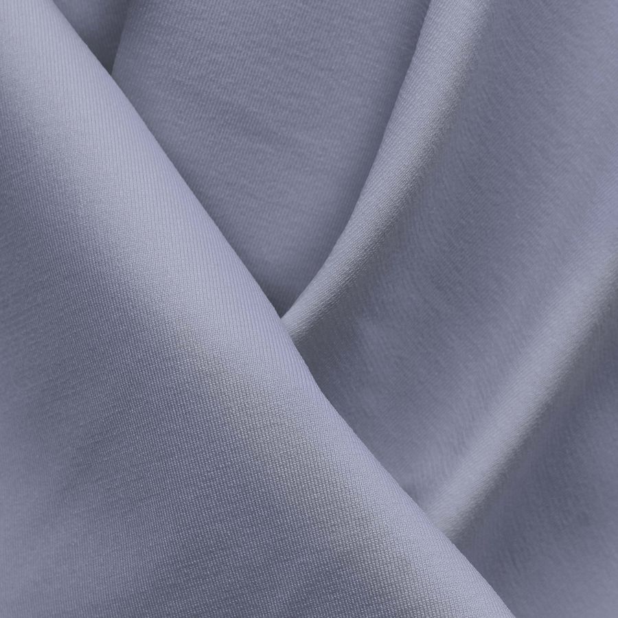 La tela base es una Lycra Reciclada Seal de 230 gr/m2, compuesta por 75% POLIÉSTER y 25% ELASTANO. Su ancho es de 150 cm y está certificada con el GRS. El color liso impreso es un morado con tonalidades de arbusto de salvia púrpura, que se consigue gracias a una combinación de tintas Cyan, Magenta y Yellow, con una ausencia total de tinta Black. Este color da un toque fresco pero elegante a la tela y combina muy bien con tonos azules y verdes.