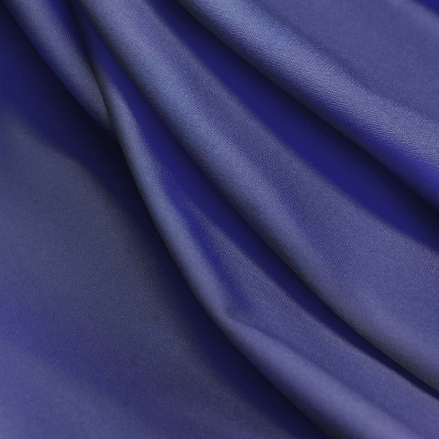 La Lycra Reciclada - Seal de 230 gr/m2 es una tela elástica de composición 75% poliéster y 25% elastano, con un gramaje de 230 gr/m2 y un ancho de 150 cm. El color liso impreso es Azul/Noche Azul, representado por un CMYK 99 95 32 24 y está impreso en una sola cara por impresión digital textil. Este color es un tono oscuro y elegante que evoca una noche estrellada y combina bien con colores como el blanco, rosa y dorado.