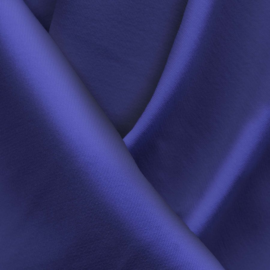 La tela base es la Lycra Reciclada - Seal de 230 gr/m2, con una composición de 75% poliéster y 25% elastano. El color liso impreso es un azul medianoche con un contenido de CMYK de 100 95 23 7. La tela base es elástica y resistente al cloro, con un factor de protección UV muy alto de 50+. La aplicación de la tela incluye lencería, ropa deportiva y trajes de baño. El tejido está impreso con el color liso a una sola cara por impresión digital textil. El color azul medianoche es elegante y sofisticado, lo que lo hace perfecto para la ropa deportiva y los trajes de baño. Combina perfectamente con tonos de azul más claros y oscuros, así como con tonos verdes.