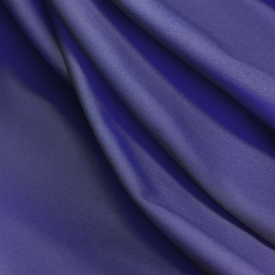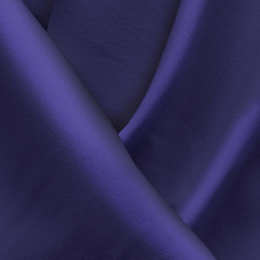La tela base es Lycra Reciclada - Seal de 230 gr/m2, una tela elástica y resistente compuesta por 75% de poliéster y 25% de elastano, con un gramaje de 230 gr/m2 y una anchura de 150 cm. El color liso impreso en esta tela es azul noche, con un CMYK de 100 100 32 22. Este color simboliza la profundidad, la estabilidad y el misterio. Técnicamente, se compone de cian y magenta al 100%, sumado al amarillo al 32% y al negro al 22%. Se combina especialmente bien con tonos más claros, como el marfil, el beige o el rosa palo.