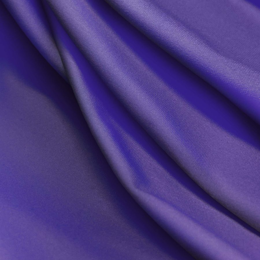 La tela base es una Lycra Reciclada - Seal de 230 gr/m2, compuesta por 75% de poliéster y 25% de elastano. Su ancho es de 150 cm y su gramaje es de 230 gr/m2. El color liso es un Morado DarkSlateBlue (CMYK: 95 100 23 10), que se combina perfectamente con tonos rosáceos o granates. La tela ha sido impresa con este color liso a una sola cara por impresión digital textil.