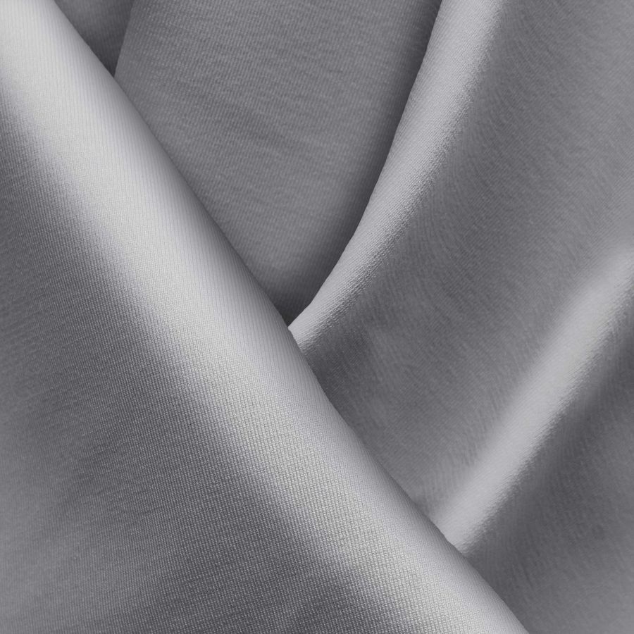 La tela base de esta prenda es Lycra Reciclada - Seal de 230 gr/m2 de composición 75% poliéster y 25% elastano, con un gramaje de 230 gr/m2 y un ancho de 150 cm. El color liso impreso es Gris Plata Sónica, que se crea mediante una combinación de tintas CMYK: 46 de cyan, 37 de magenta, 33 de amarillo y 13 de negro. El resultado es un color gris plateado con un matiz azul oscuro.