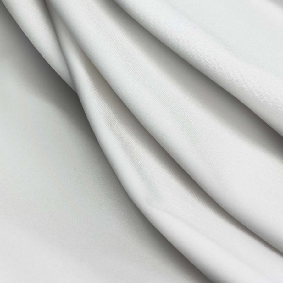 La tela base de esta prenda es Lycra Reciclada - Seal de 230 gr/m2, una tela compuesta por un 75% de poliéster y un 25% de elastano con un gramaje de 230 gr/m2 y un ancho de 150 cm. En cuanto al color liso impreso, se trata de un blanco algodón con un CMYK de 5 3 4 0, lo que significa que la tinta cyan se utiliza en mayor medida en la impresión. Este color blanco algodón se combina especialmente con tonos pasteles y grises.