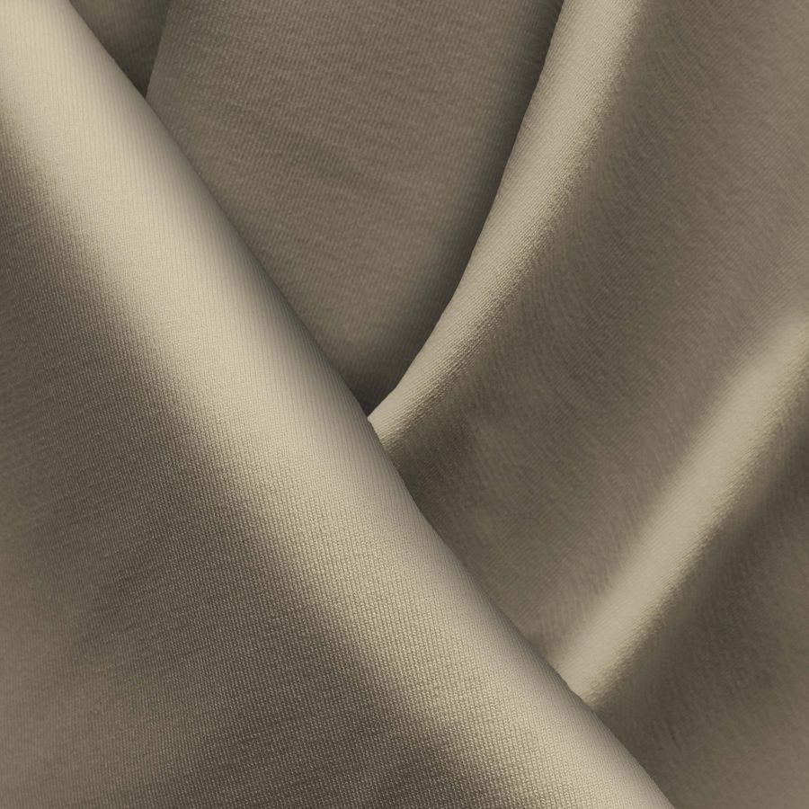 La tela base es Lycra Reciclada - Seal de 230 gr/m2 y está impresa en un color liso de Gris/Marrón Ejército, representado por el CMYK de 44 40 55 27. Este color, que combina matices de verde y marrón, sugiere un aire natural y terroso. Este color secundario combina muy bien con otros colores naturales, como el beige y el blanco, así como con tonos más oscuros y elegantes, como el negro y el azul marino. Es importante destacar que la tela está impresa a una sola cara por impresión digital textil, utilizando la tecnología de sublimación de poliéster.