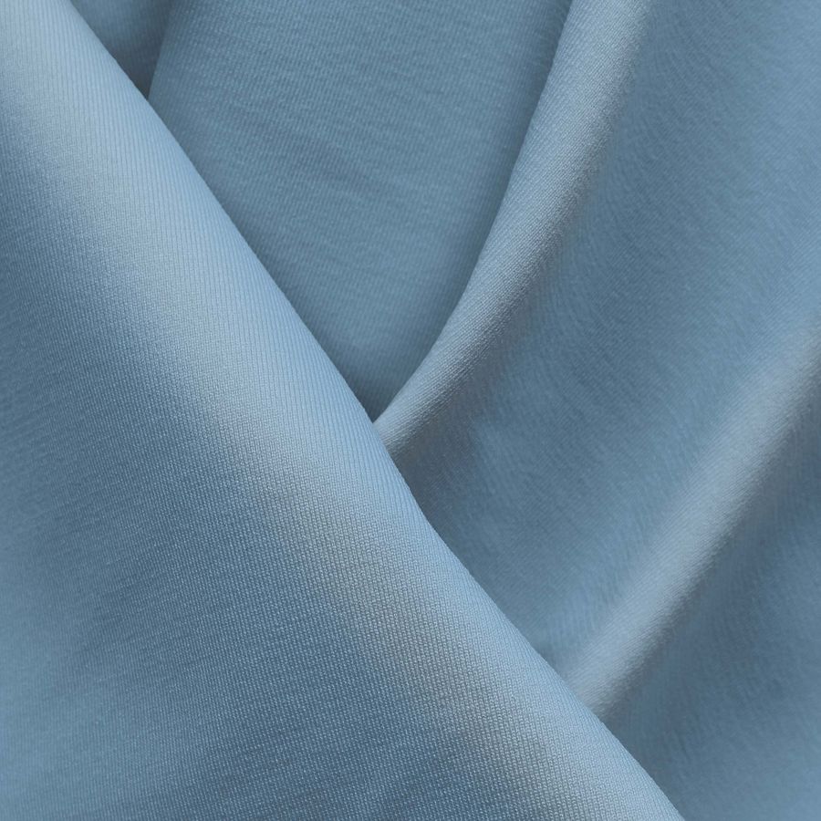 La tela base es Lycra Reciclada - Seal de 230 gr/m2, compuesta por 75% POLIÉSTER y 25% ELASTANO, con un gramaje de 230 gr/m2 y una anchura de 150 cm. El color liso impreso en la tela es Azul Claro del Día, con un CMYK de 40 8 2 0. El color es suave y agradable a la vista, con un toque de frescura y energía. El tono de azul claro se combina perfectamente con tonos blancos, negros y grises, lo que permite una gran variedad de creaciones de ropa.