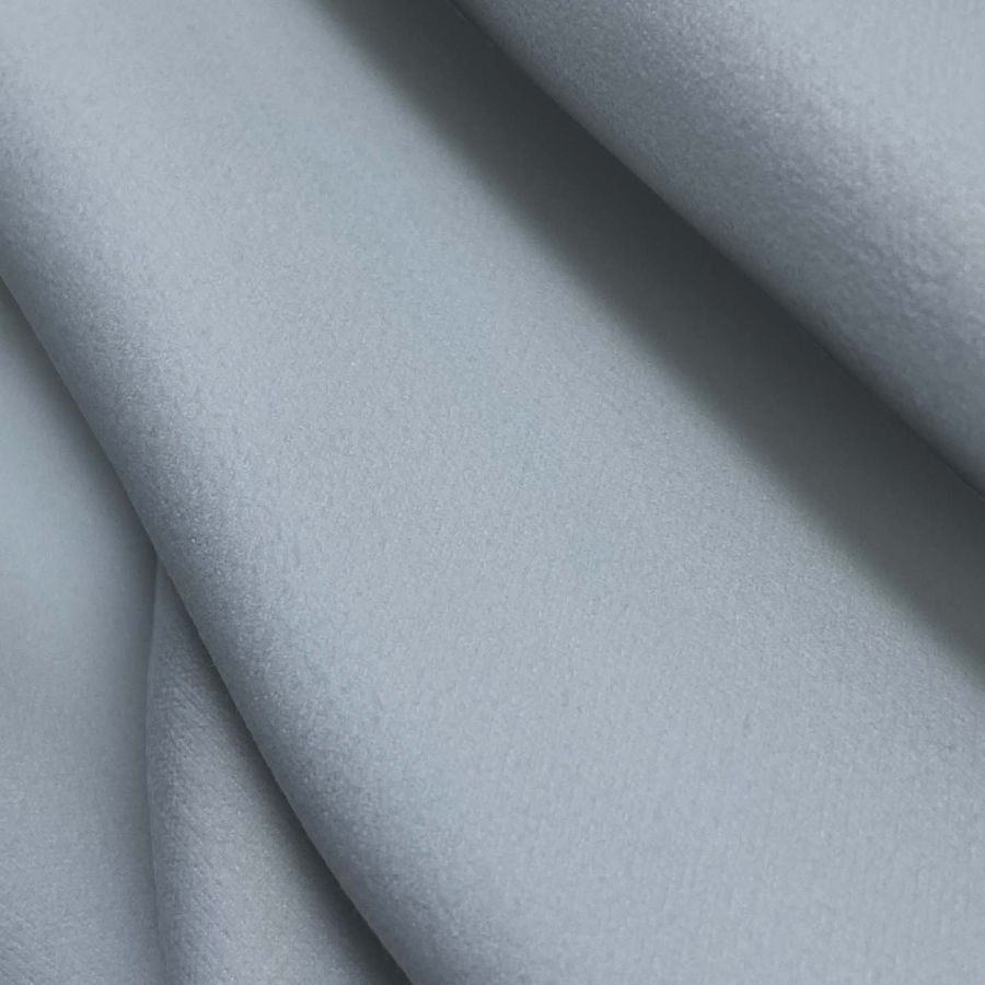 La tela base de la Microfibra para Toalla - Swing es de composición 100% poliéster con un gramaje de 200 gr/m2 y un ancho de 160 cm. Su color liso impreso es Gris Azulado, cuyos atributos de tinta CMYK son 36, 21, 17, 1. El color secundario Gris es una tonalidad fría, elegante y sofisticada. Combina perfectamente con los tonos blancos, negros, turquesas y azules pastel, creando ambientes relajantes y confortables. Este tejido está impreso con el color liso a una sola cara por impresión digital textil, lo que proporciona una alta calidad en la imagen y detalle en la impresión.