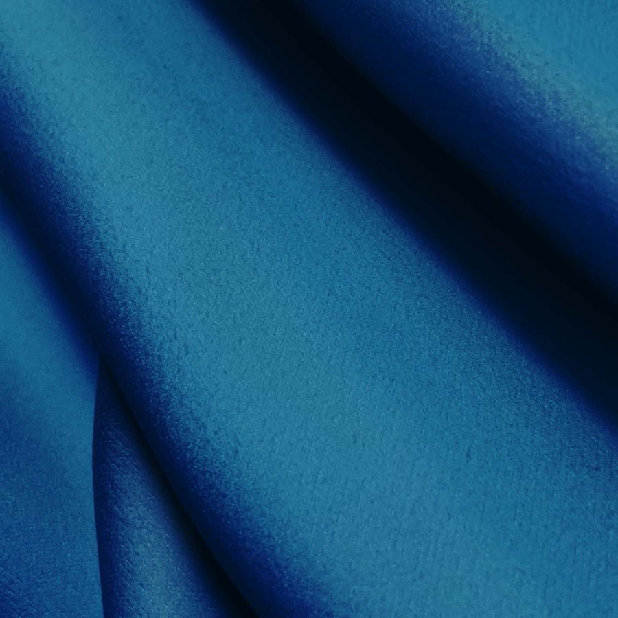 La Microfibra para Toalla - Swing es una tela de 100% poliéster con un gramaje de 200 gr/m2 y un ancho de 160 cm. El color liso impreso es un azul zafiro con una mezcla de 98% cian, 67% magenta, 20% amarillo y 5% negro en su contenido de CMYK. Este color es simbólicamente representativo de la paz y la tranquilidad, y a nivel técnico su tonalidad lo hace destacar como un color ideal para productos de la categoría de hogar y baño. Además, combina bien con otros tonos de azul más claros y neutrales como el blanco, gris y beige.