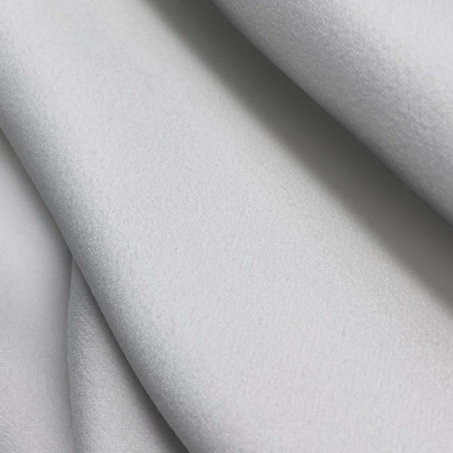 La tela base es una microfibra 100% poliéster con un gramaje de 200 gr/m2 y un ancho de 160 cm. El color liso impreso es de tonalidades gris y platino, con un CMYK de 9 9 6 0, lo que lo convierte en un color suave y elegante. Este color se combina especialmente bien con tonos blancos y negros, así como con tonalidades suaves de rosa y verde.