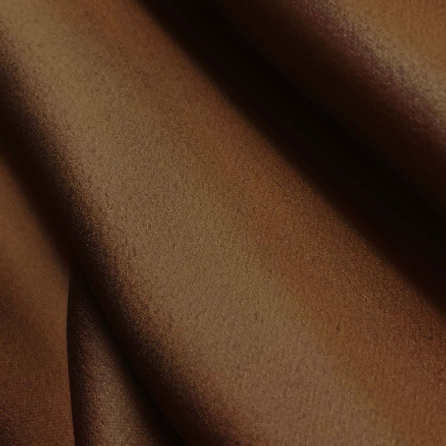 La tela base es la Microfibra para Toalla - Swing, con una composición 100% POLIÉSTER, y un gramaje de 200 gr/m2. El color liso impreso es un cálido marrón con tonos de chocolate con leche, con un CMYK de 42 73 93 62. Este tono transmite un ambiente acogedor y sofisticado en cualquier aplicación de la tela. El color secundario del marrón con tonos de chocolate con leche, combina especialmente con otros tonos cálidos y naturales como verdes oscuros y dorados.