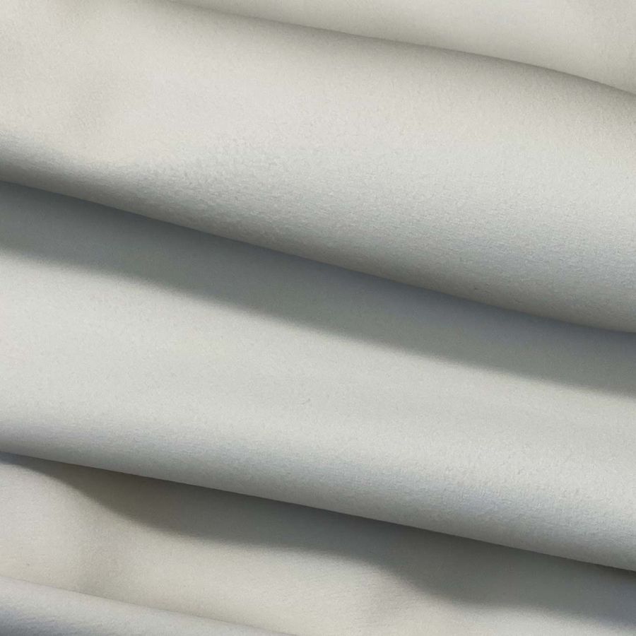 Es importante destacar que la tela base está impresa con el color liso a una sola cara por impresión digital textil, lo que significa que no es un tejido tintado sino impreso por una sola cara. La textura suave y lisa de la tela base se complementa perfectamente con la tonalidad cremosa del color impreso, lo que le confiere una apariencia confortable y elegante.